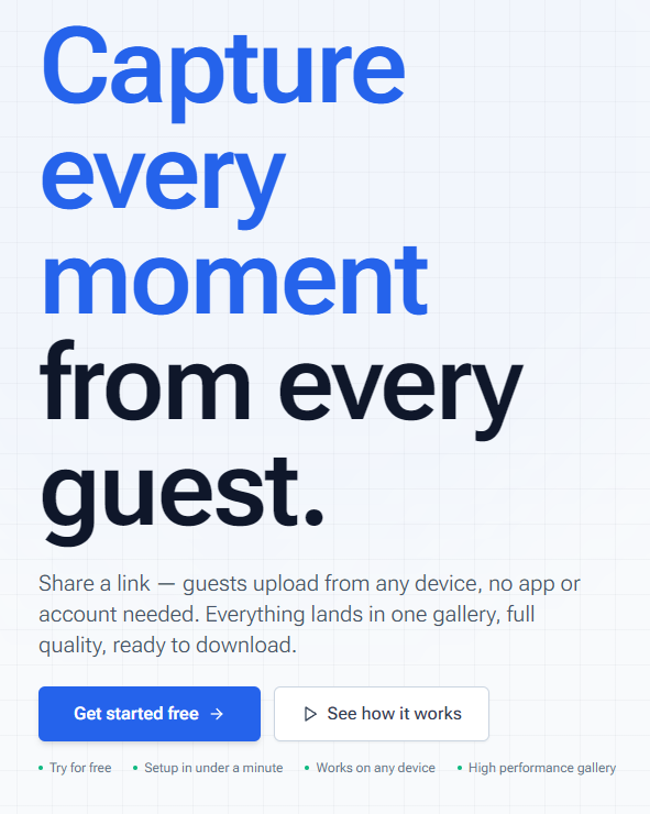 Comparing several event photo collection and qr code photo collection services of 2026 so that you don't have to. If you are looking to collect photos and videos from guests, or just want to share all your own photos and videos with guests, you are likely wondering: What is the best option?